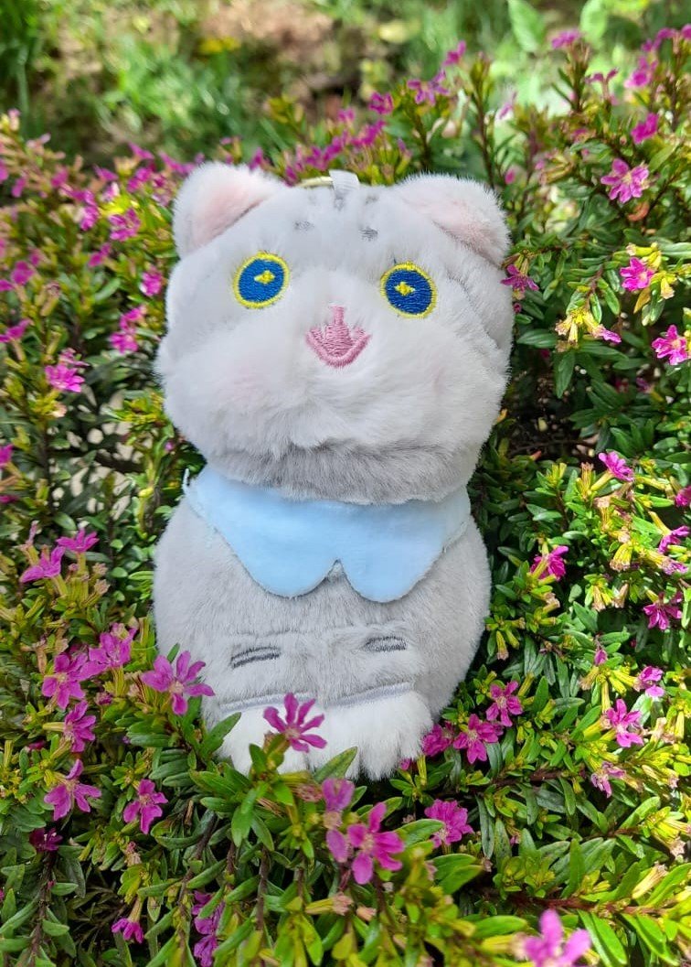 Este encantador gatito gris destaca por sus enormes ojos azules y su expresión de asombro que capturará la atención de tu mascota. Fabricado con felpa de alta calidad y detalles bordados para mayor seguridad (sin piezas plásticas que se puedan tragar), es el juguete de consuelo perfecto. Su collar azul le da un toque de distinción, haciendo que se vea adorable en cualquier rincón de tu hogar.